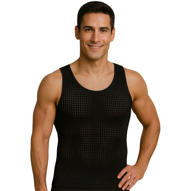 Insta Slim Men’s Mesh Hollow-Out Muscle Tank Top – 103MS0001 Push limits, not fabric. The Insta Slim Hollow-Out Muscle Tank is designed for the man who wants to stand out, stay cool, and own every room he enters. Designed with mid-compression lightweight mesh, this breathable, sheer tank delivers comfort, performance, and undeniable edge. Whether you're powering through a gym session, chilling at home, or turning heads on a night out, this see-through, body-defining top keeps you sharp and confident. The fitted cut sculpts your upper body, while the transparent mesh delivers serious airflow and serious style. Wear it solo for a bold impact or layer it under a jacket for an unexpected twist. Want a more relaxed look? Size up. Want to show off the work you’ve put in? Keep it fitted.