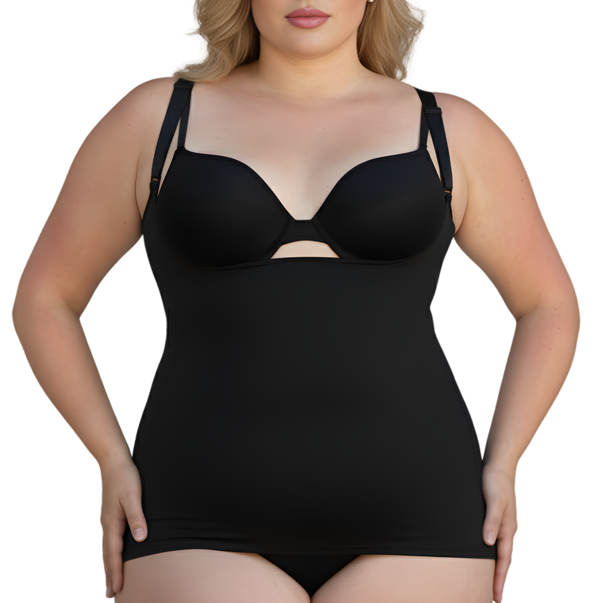Introducing the unique InstantFigure Underbust Shapewear Top, designed to offer unparalleled slimming and shaping benefits. This plus-size compression shapewear top features an open bustline, allowing you to wear your preferred bra while providing comfortable slimming coverage from under your bust to your hips. The InstantFigure underbust top effectively flattens your tummy, eliminates muffin top, and slims and trims your waist. With comfortable, adjustable bra straps that are long enough to crisscross in the back, this sleeveless top ensures a perfect fit.